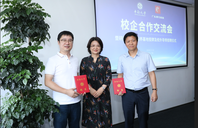 7月12日,中南大学商学院龚艳萍院长率队走进广东厚方开展调研走访。在双方与会人员的共同见证下,龚艳萍院长、潘文盛董事长为中南大学研究生联合培养基地揭牌;龚院长向董事长潘文盛先生、总经理张良先生颁发中南大学硕士研究生校外兼职导师聘书。